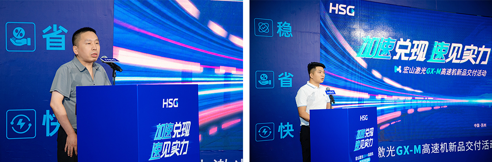 2025年6月25日,宏山激光(HSG Laser)在蘇州基地隆重舉辦“加速兌現(xiàn),速見實力”主題交付活動,榮譽見證首批GX-M高速激光切割機正式交付啟用。此次儀式標(biāo)志著GX-M系列產(chǎn)品全面邁入市場應(yīng)用,來自行業(yè)的多位嘉賓、合作伙伴及客戶代表齊聚一堂,共同見證這場以“技術(shù)兌現(xiàn)、價值落地”為核心的交付盛典。
